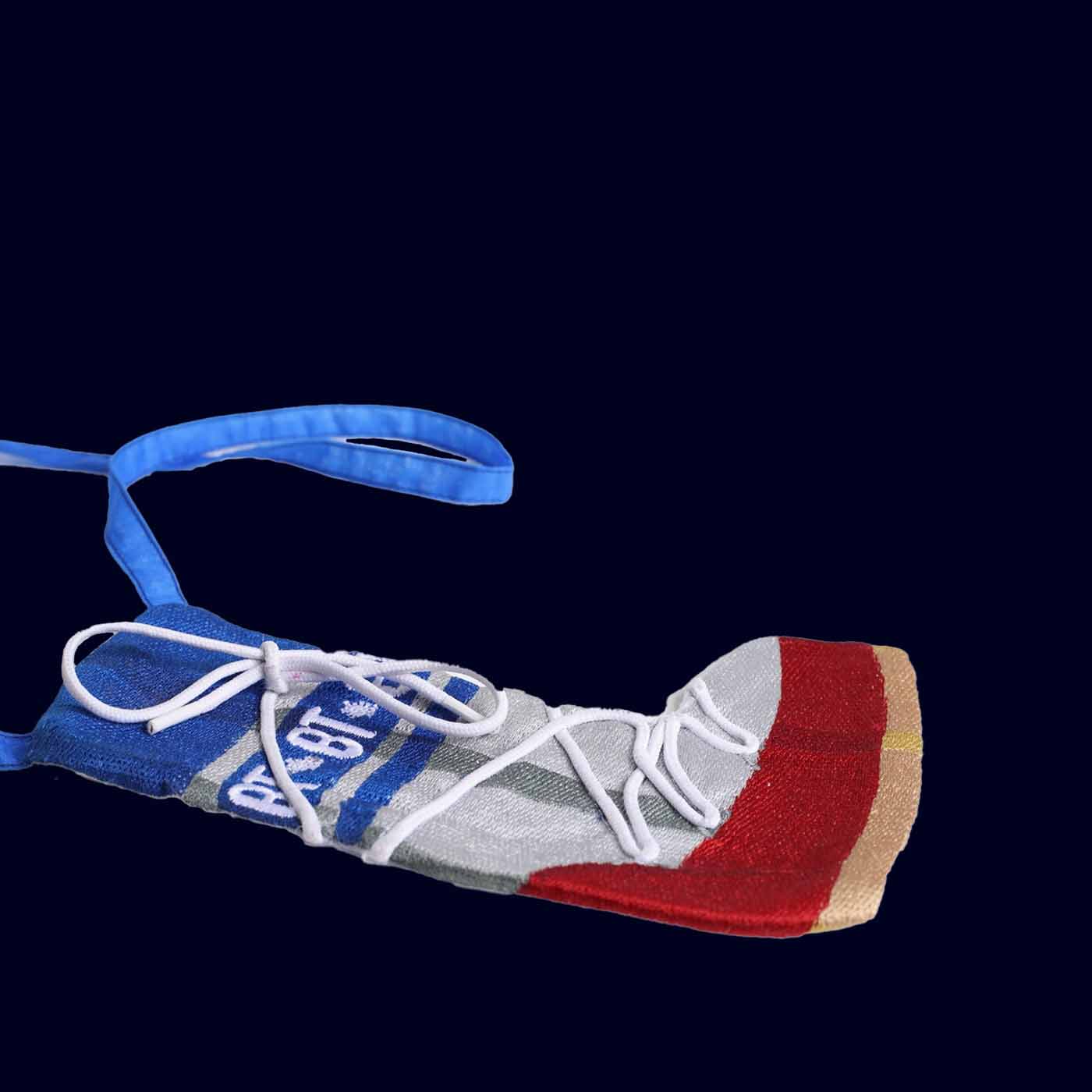 Brigitte Tanaka’s Moon Boot Organza Pouch walks the line between fashion and fantasy. Inspired by the iconic après-ski boots that once stomped through snow-covered resorts, this playful piece reimagines their silhouette as a light, transparent pouch — embroidered in fine detail and infused with a touch of nostalgia.
