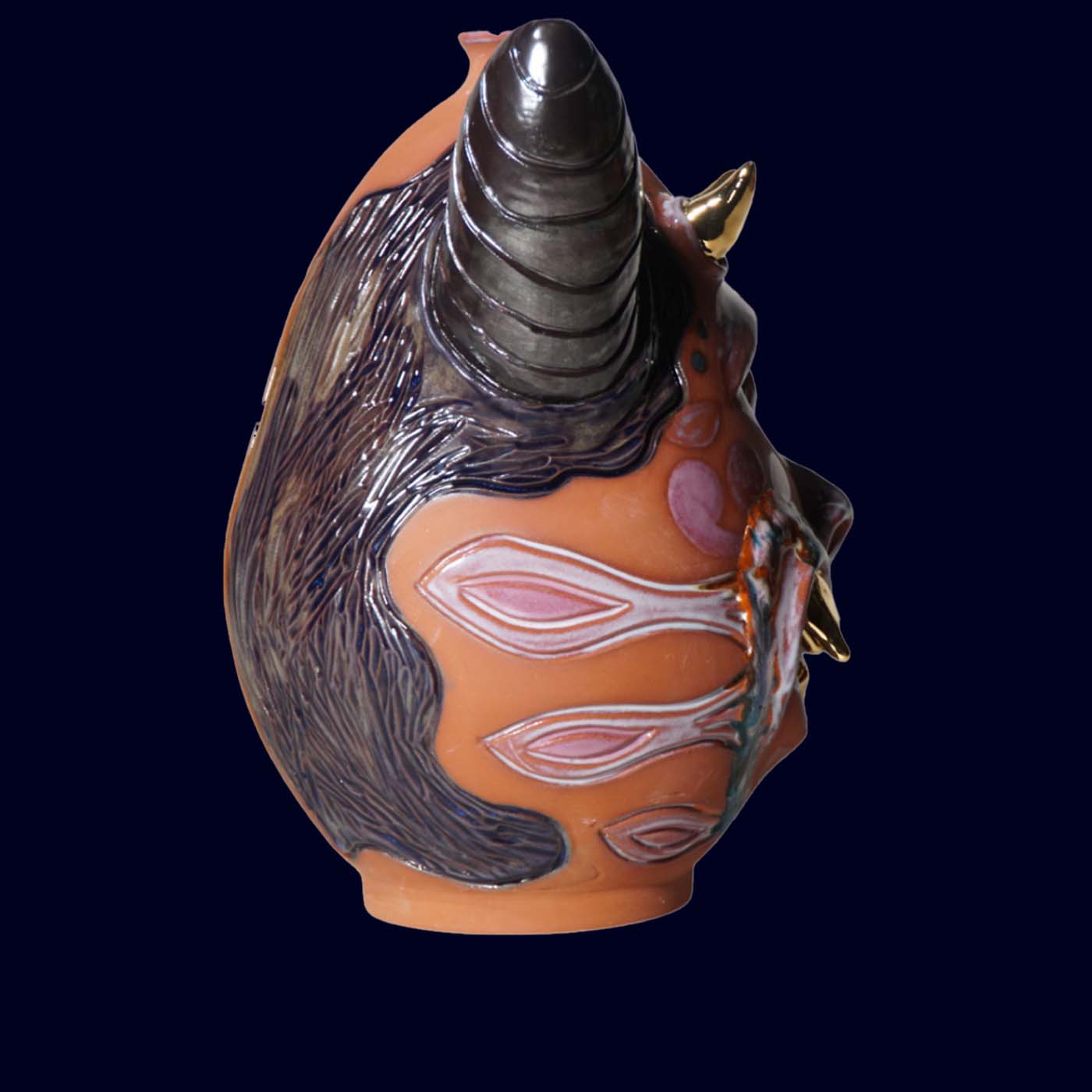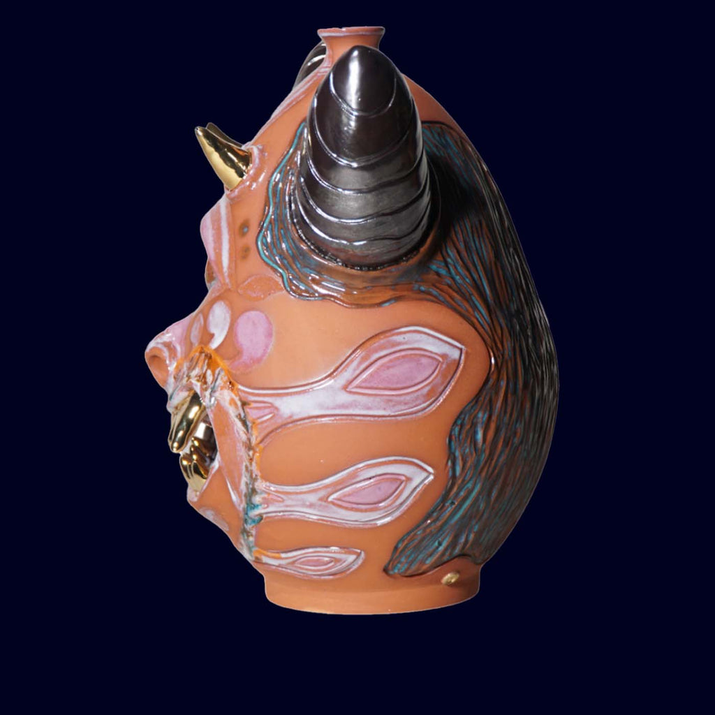 This is not a vessel for use but a guardian object, meant to animate any space it inhabits.