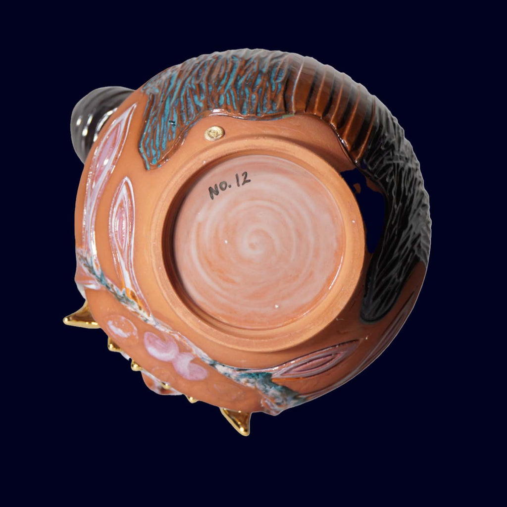 Part of Kim’s celebrated Dogabi series, these sculptural jars expand on his language of myth and mischief. Every curve and incision is made by hand, each glaze layer reacting unpredictably in the kiln—resulting in colors and surfaces as alive as the spirits they represent. The high-temperature oxidation firing and 23.5-karat British gold accents give this work a distinct luster and presence that shifts with the light.