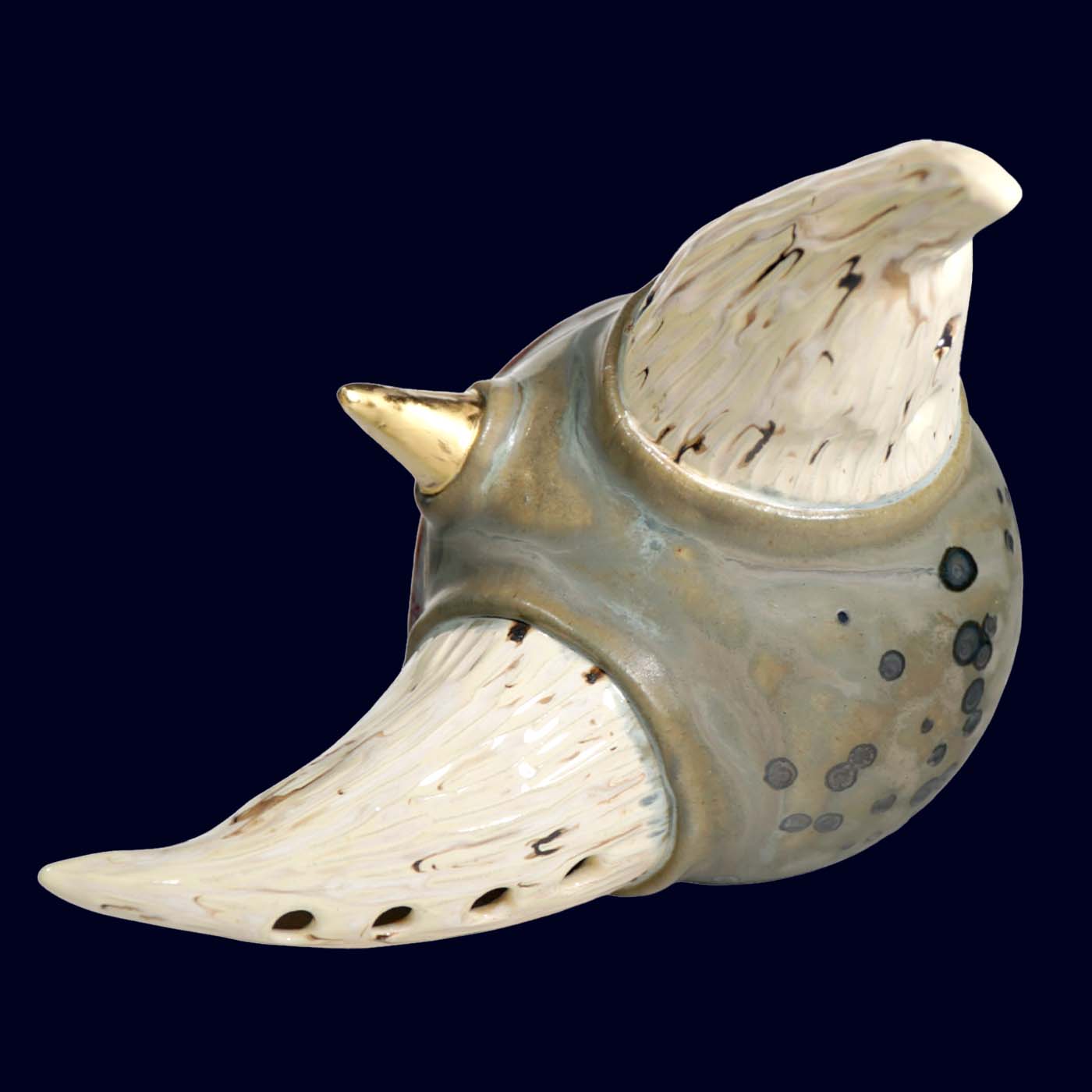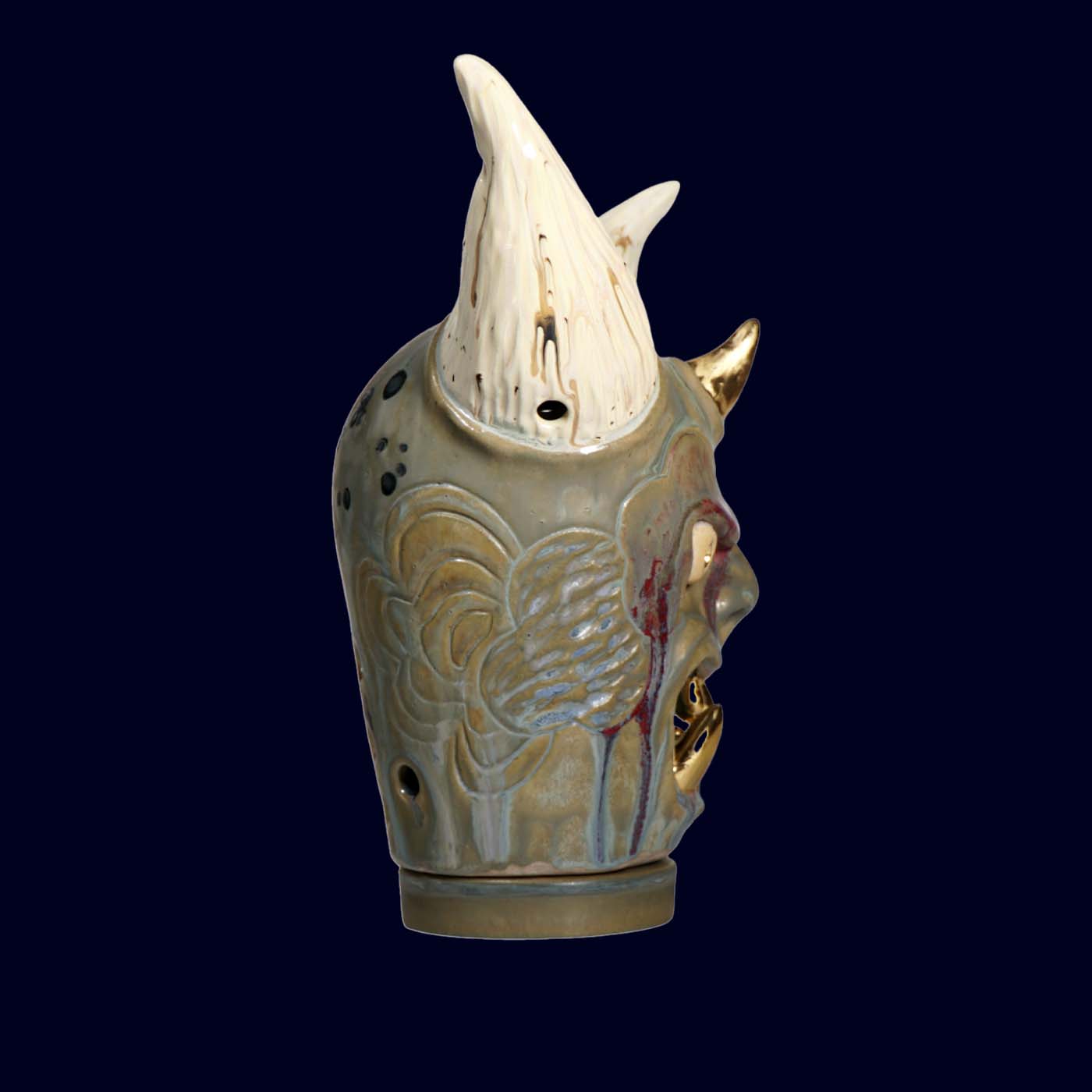 A one-of-a-kind ceramic work with 23.5k gold details.