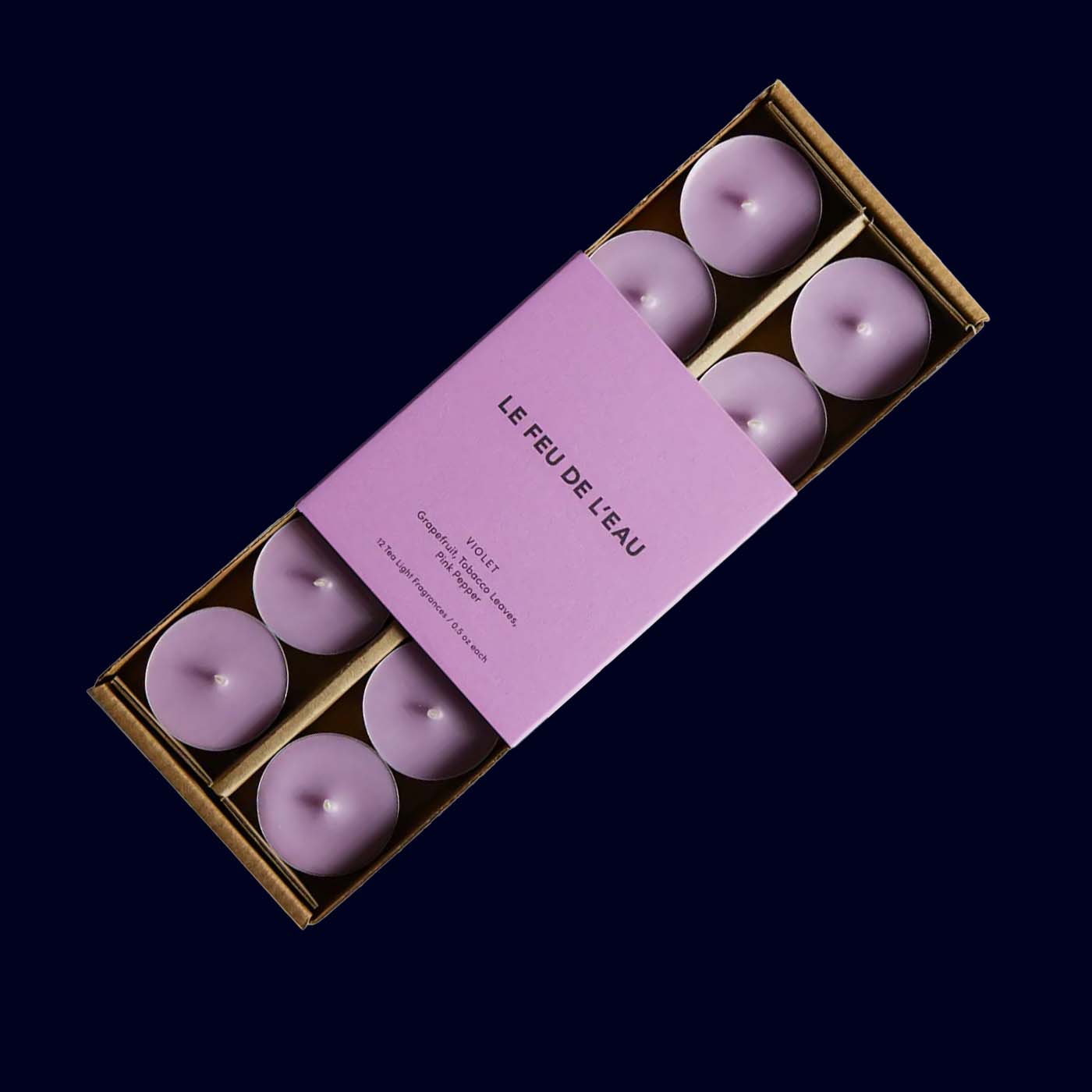 These tea lights carry Le Feu de L’Eau’s signature artisanal touch: small-batch pours using a clean, coconut–apricot wax base that burns evenly and softly. Scattered in votives around the room, they elevate ordinary moments—dinner gatherings, bath time, late-night reading—into something quietly memorable. Violet’s scent is layered and nuanced, balancing bright citrus with tobacco’s smoky warmth so you get presence without heaviness.