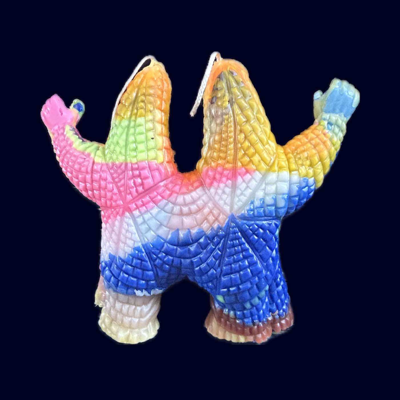At approximately 7.5" H × 9" W, Confetti Edition is bold, joyful, and impossible to ignore. Where some dragons brood, this one announces itself. A sculptural beeswax candle that feels animated even at rest—equal parts folklore creature and modern totem.