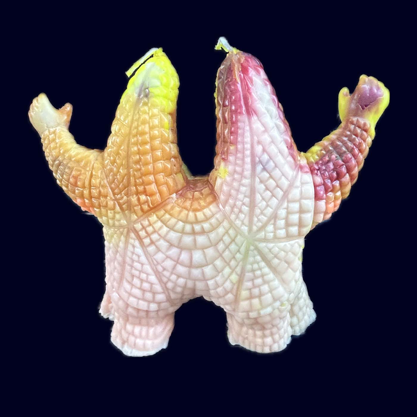 Introducing Alice the Dragon: Dawnburst Edition—a radiant, dreamlike creature in marbled hues of pink, yellow, soft green, and a single lavender foot that feels like it stepped out of a parallel sunrise. At 7.5" x 9", this sculptural beeswax candle has presence: lifted wings, open stance, and a mischievous face that charms instantly.