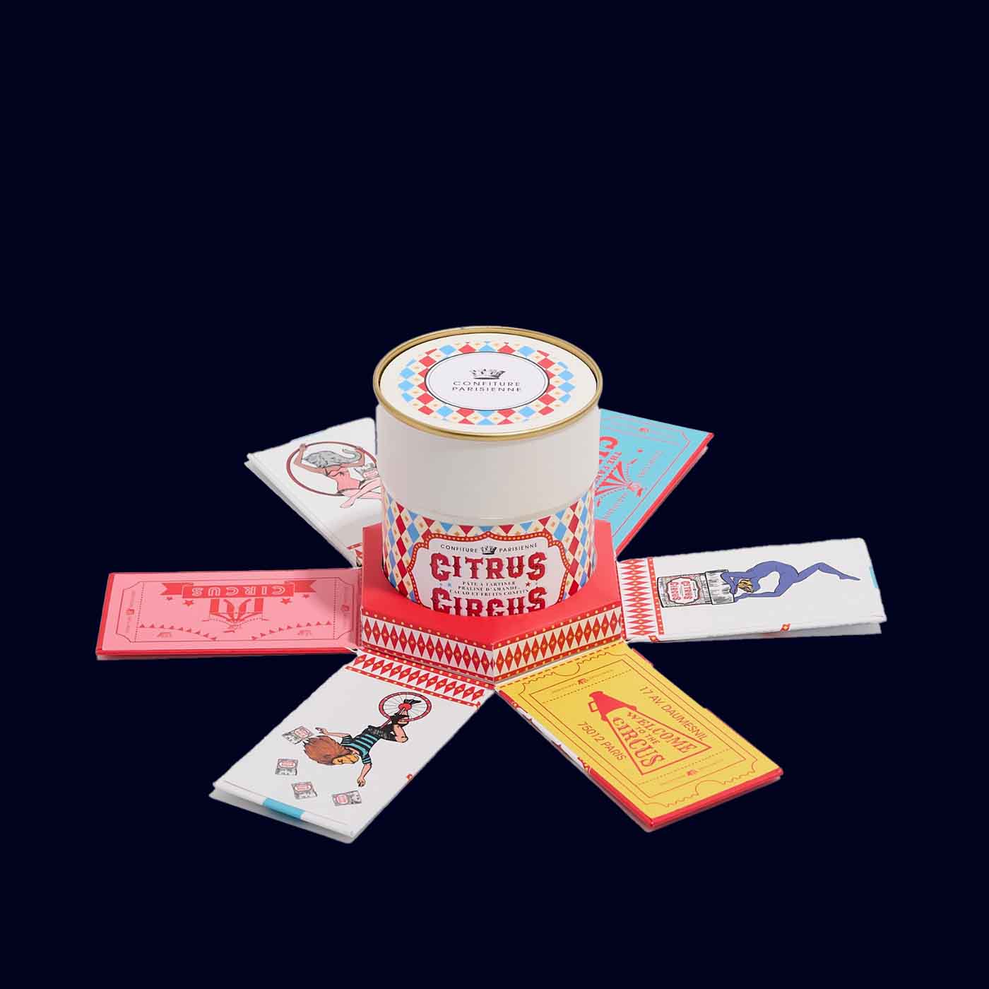 Handcrafted in Paris, Citrus Circus blends roasted almonds for structure, cocoa for depth, and candied orange and lemon for a fresh citrus lift.