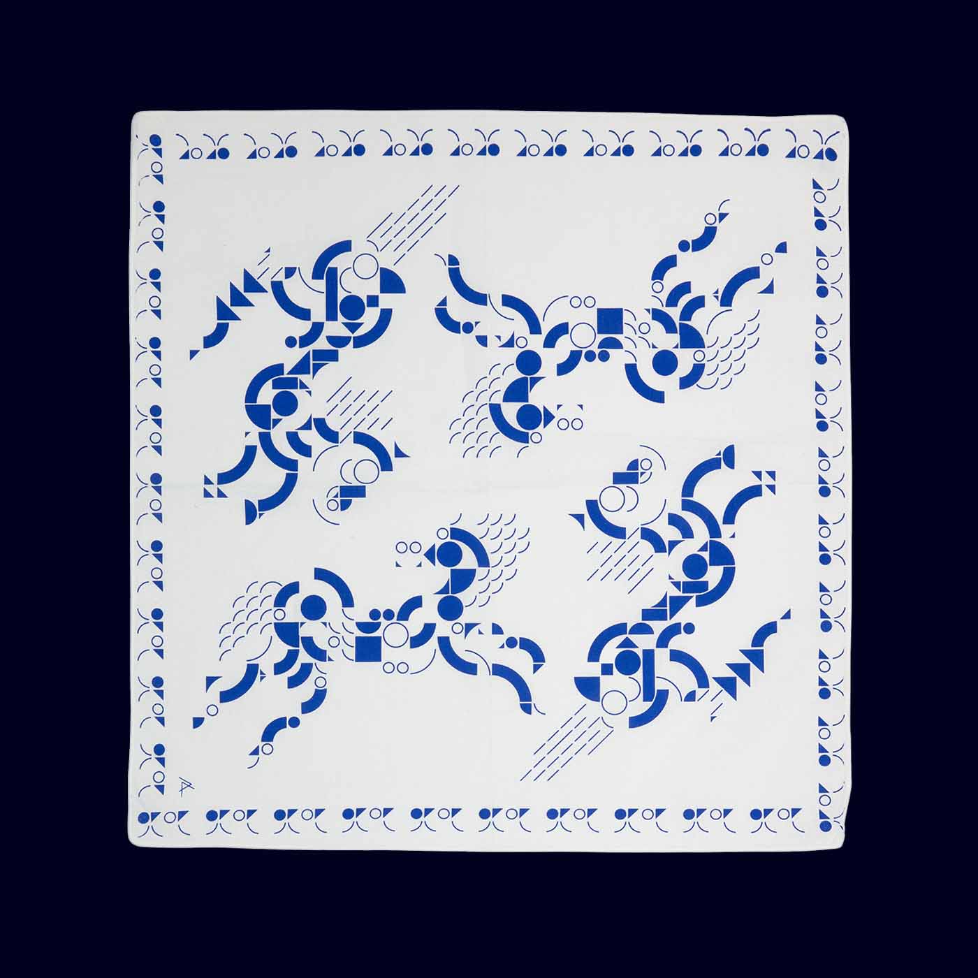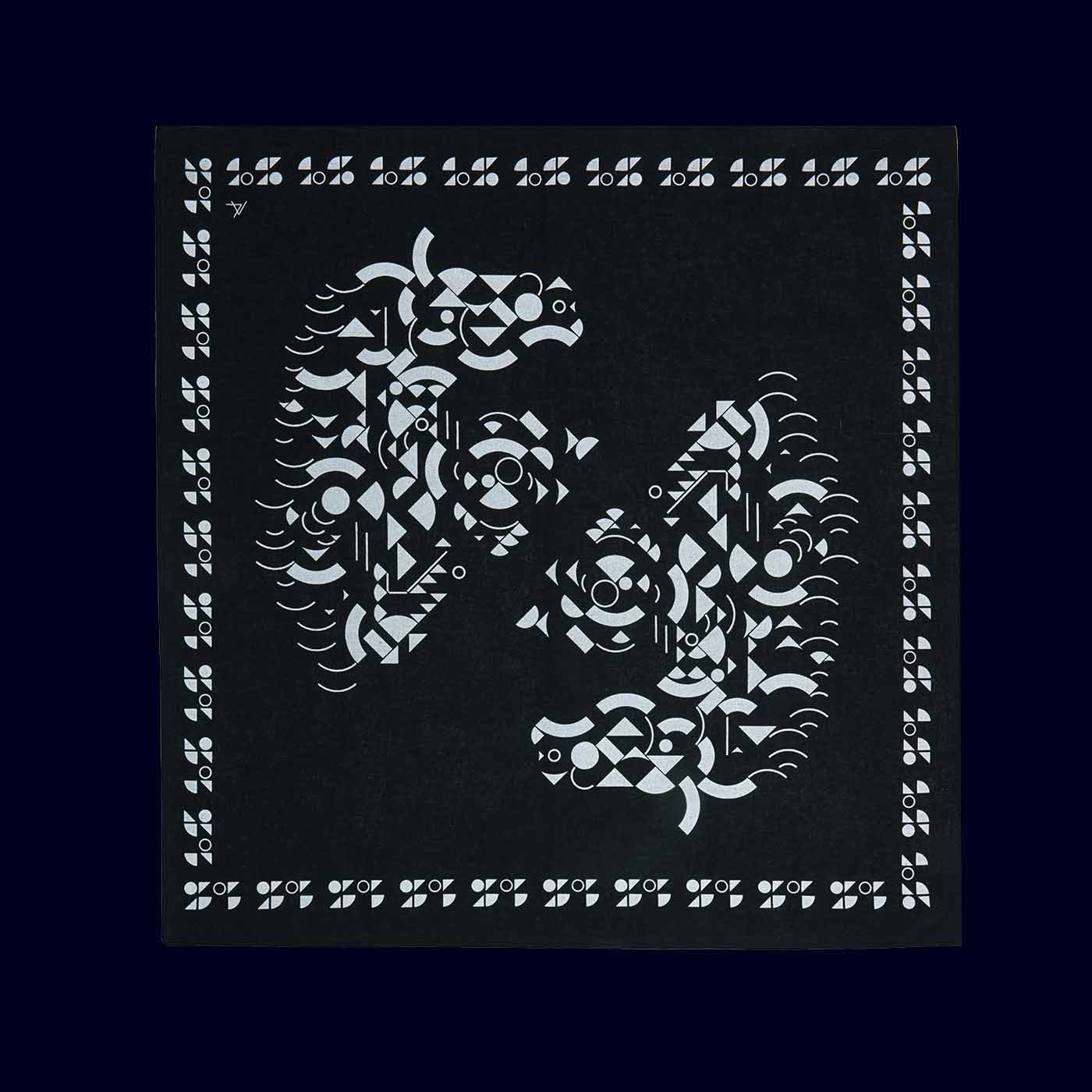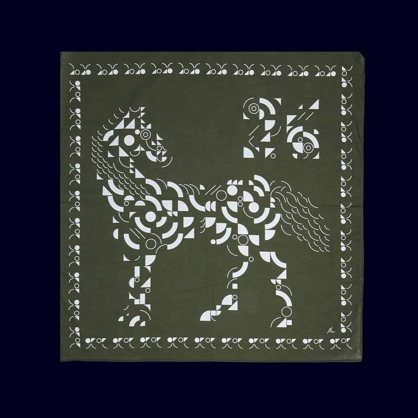 Created for the Year of the Fire Horse, this 100% cotton bandana feels less folkloric and more coded. The horse is built from graphic fragments, like a constellation rearranged into speed.