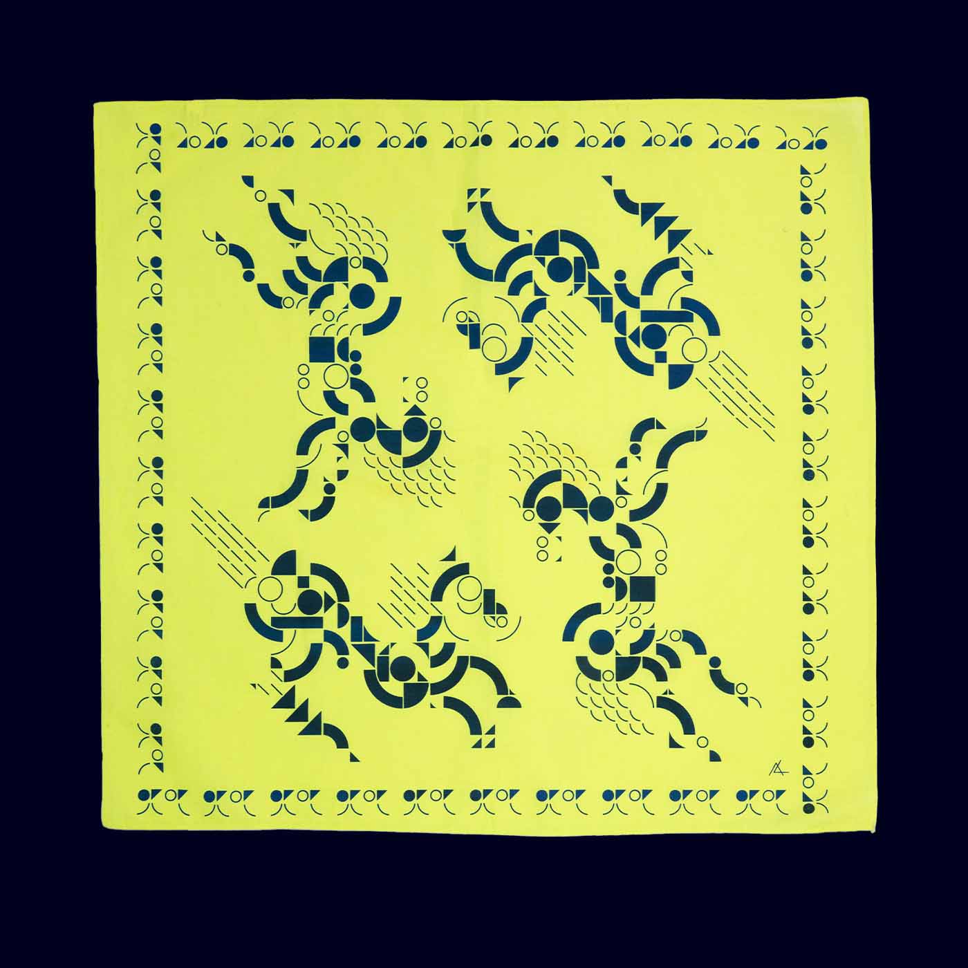 Screenprinted in Brooklyn on soft yet structured cotton, the 21" x 21" square can be worn at the neck, tied to a bag, wrapped at the wrist, or framed as a small piece of textile art.