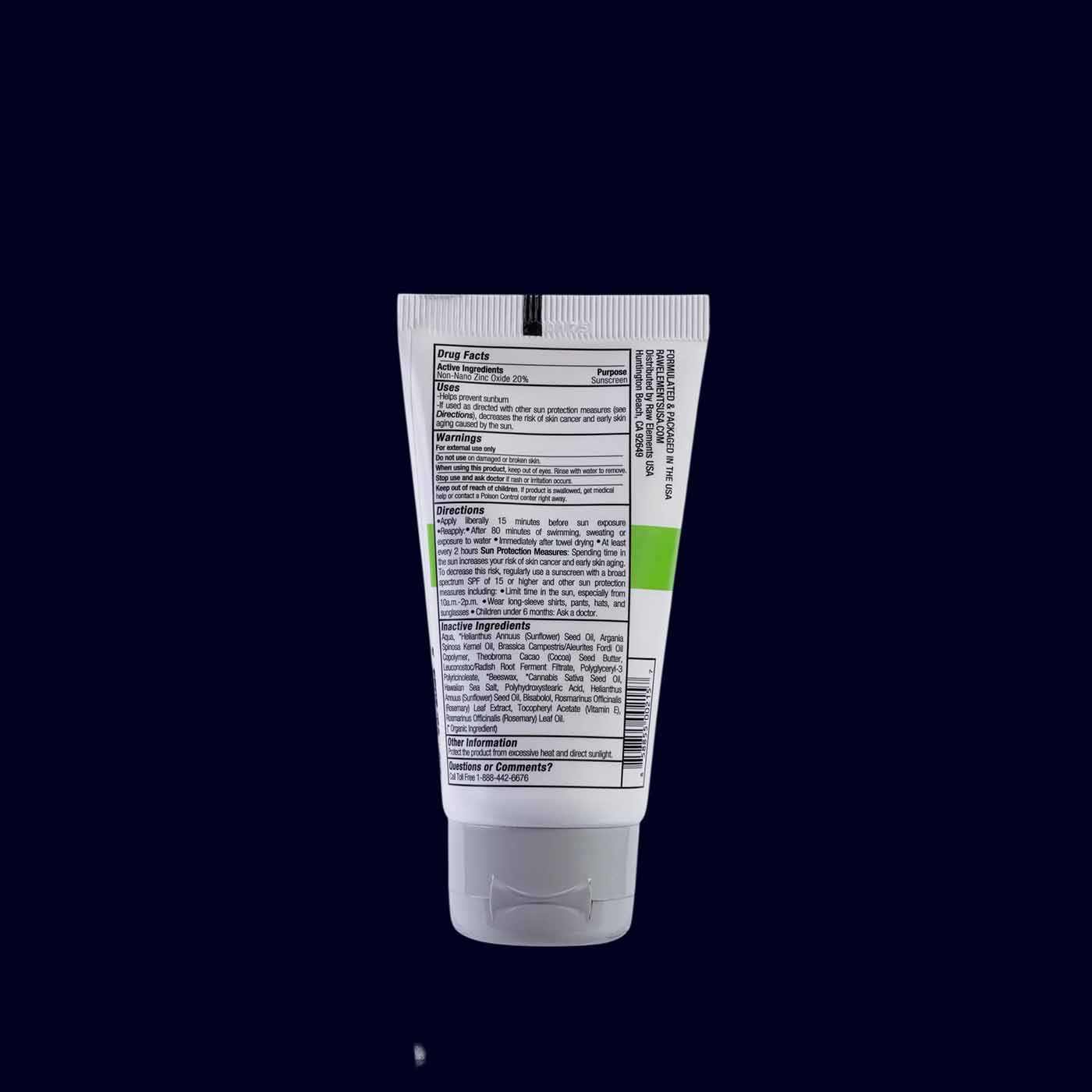 Active: Non-Nano Zinc Oxide 23%. Inactive: Helianthus Annuus (Sunflower) Seed Oil*, Cera Flava (Beeswax), Cannabis Sativa (Hemp) Seed Oil, Theobroma Cacao (Cocoa) Seed Butter*, Mangifera Indica (Mango) Seed Butter, Camellia Sinensis Leaf Extract (Green Tea), Camellia Sinensis Leaf Extract (Black Tea), Coffea Arabica (Coffee) Seed Extract*, Rosmarinus Officinalis (Rosemary) Leaf Oil, Tocopherol (Vitamin E). *Certified Organic Ingredient.