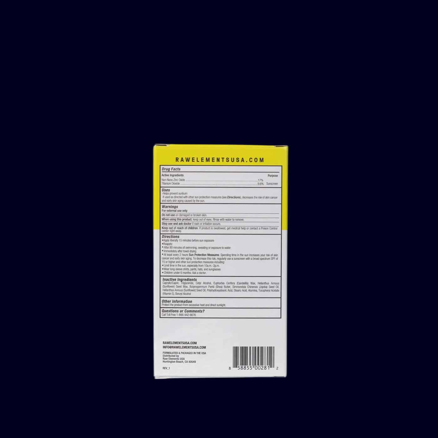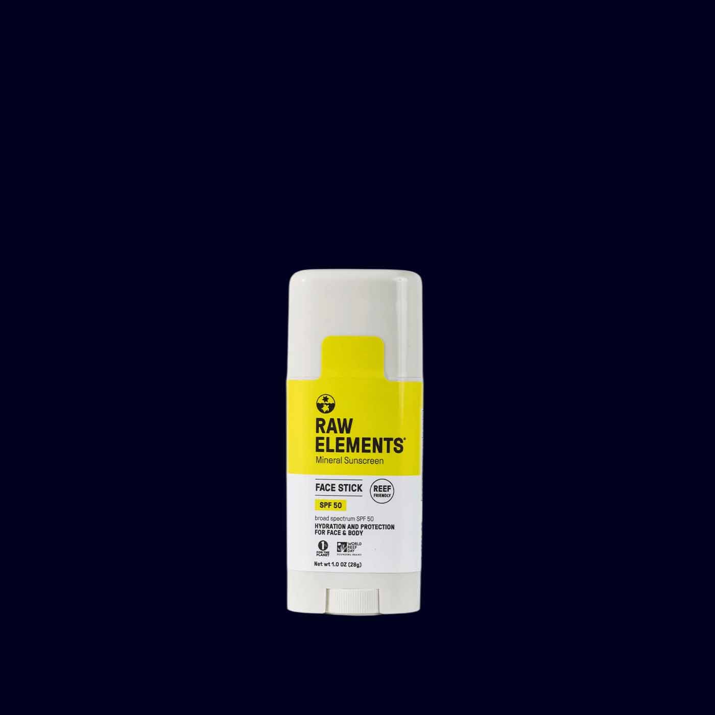 A mineral sunscreen stick with SPF 50, built for the face and easy enough for anywhere. Raw Elements' SPF 50 Stick works with a dual-mineral formula — non-nano zinc oxide and titanium dioxide — for true broad spectrum UVA and UVB protection in a solid, mess-free format. Water-resistant for up to 80 minutes. Never runs into eyes.