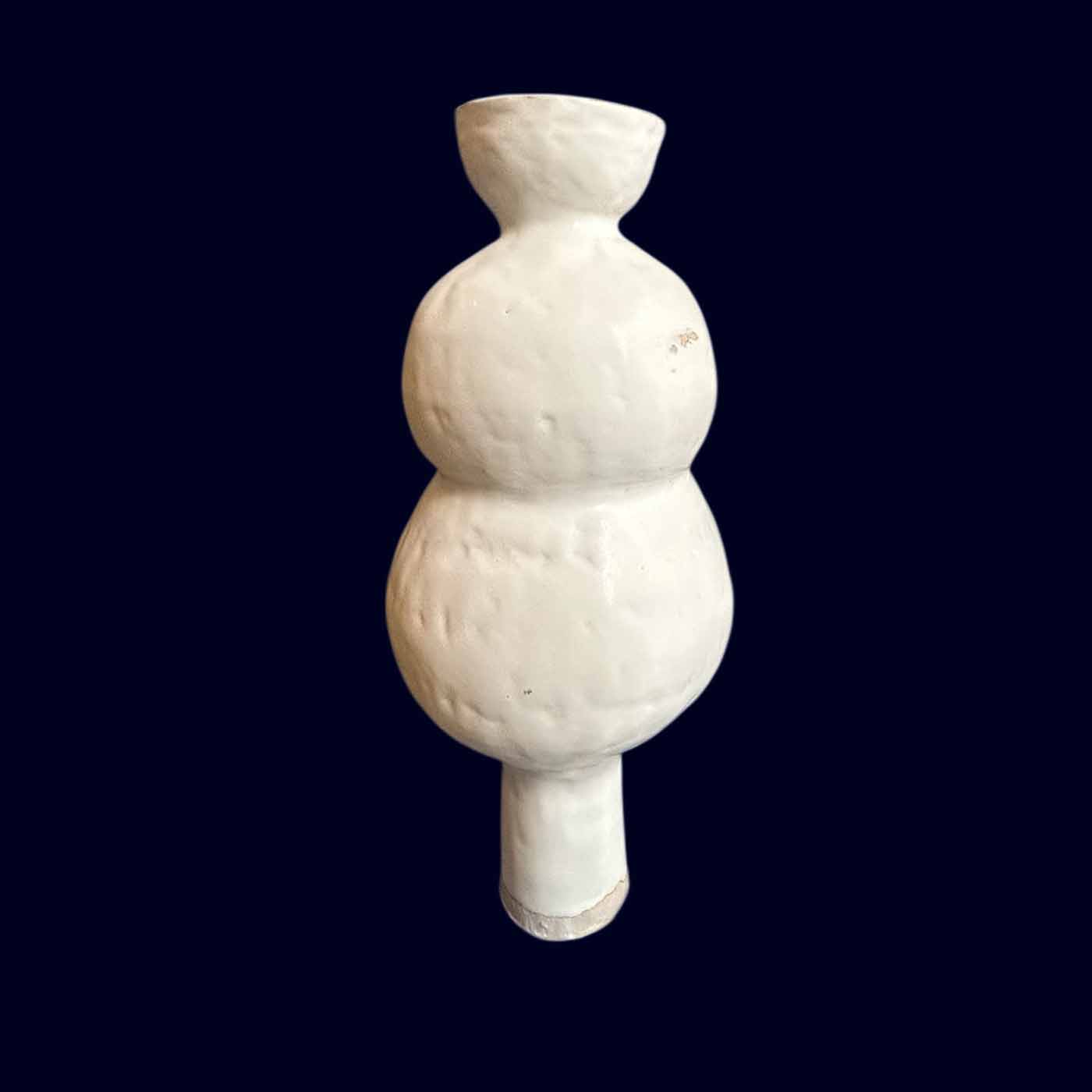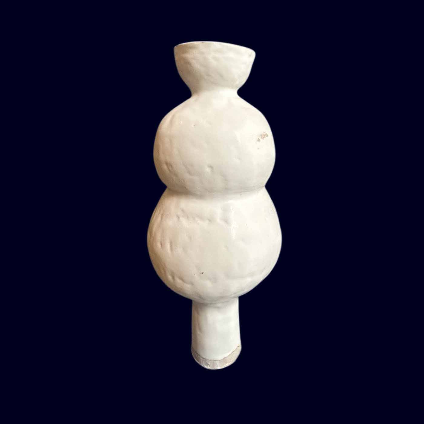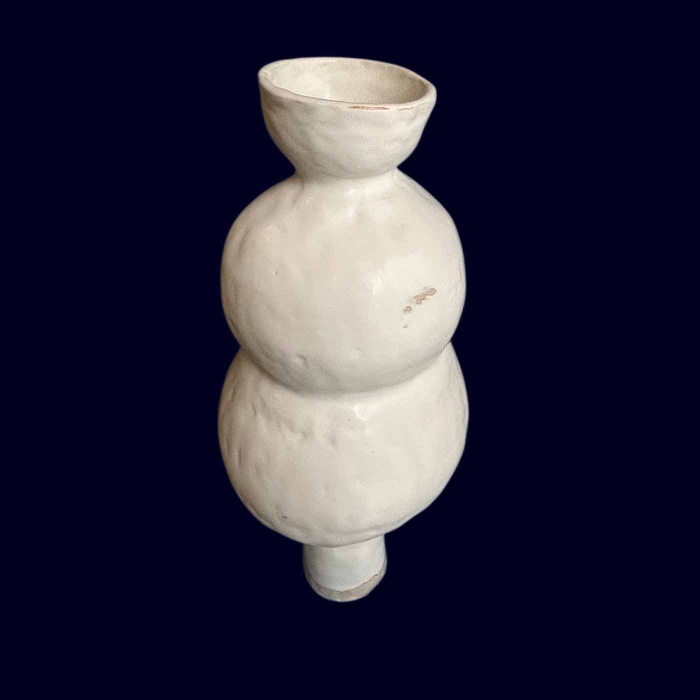 A handbuilt tall bubble vase in matte white — two stacked spheres rising from a narrow pedestal base, opening into a wide cup that lets flowers find their own way. At 17 inches tall with a 7-inch diameter at its widest point, this is a vase that commands a room without asking for attention.